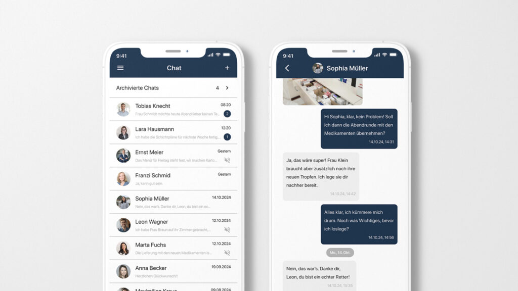 Bleibe verbunden: Die integrierte Chat-Funktion ermöglicht schnelle und direkte Kommunikation zwischen Mitarbeitern, Teams oder Abteilungen. Nutze die Kontaktverwaltung, um alle relevanten Ansprechpartner im Unternehmen immer griffbereit zu haben.